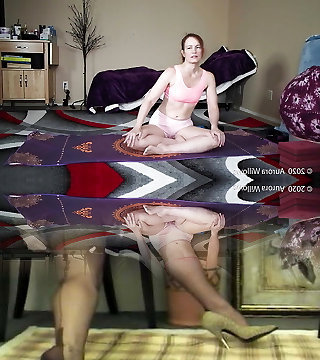 Aurora Willows stretching in panties