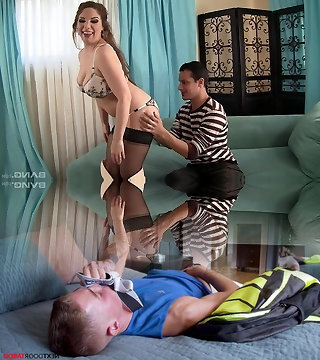 Hook-up with Busty MILF Penny Barber embarks after she noticed stepson's boner in their bed