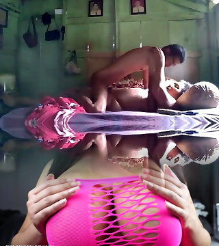 Redhead Wife dances with juggling Boobs