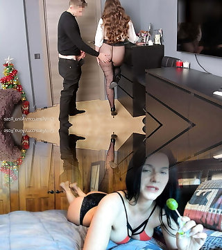 Fucked in the kitchen, Busty Stepmom in Stockings gets Cum on High-heeled Slippers