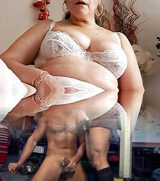 Mommy-in-law makes son-in-law cum on her depraved ass in undies