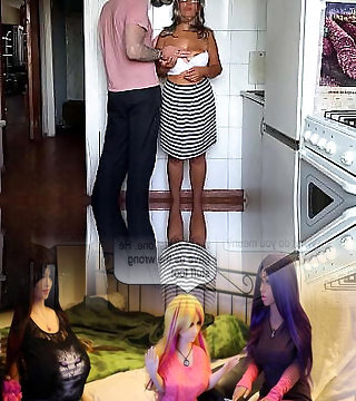 Stepmom in the kitchen gave me to rub her tits and allowed me to fuck her in the bootie and in her mouth
