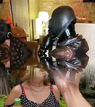 Latex Danielle try penis in vacuum pump and long 69 with sperm fountain