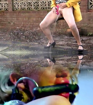 Close up mature coochie pissing in toilet