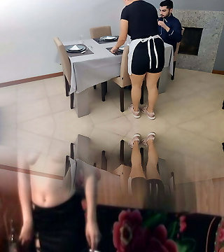 Waitress gets internal cumshot in her cream-colored twat under the table