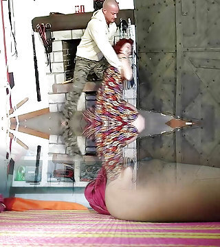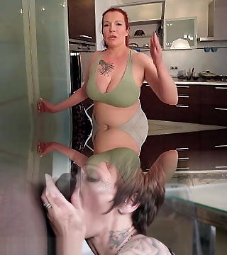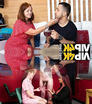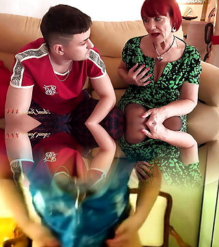 SHAME4K. Old and sexy redhead Nadin Keddo throws a leg with friends stepson