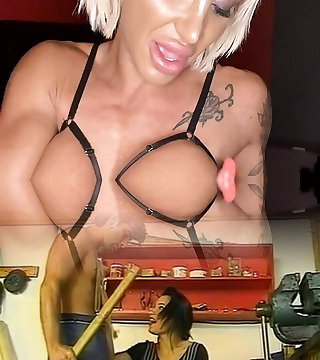 cE2204-A mature woman who invites a lascivious donk with a stick out at a sport gym