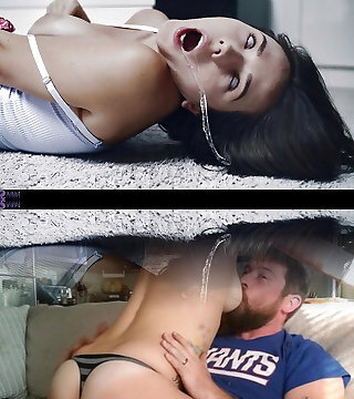 A couple of stepbrothers have a good pummel in the dining guest room, after a family dinner. She spunks in her mouth.