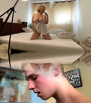 Curvy huge-boobed mature lady with big hairy bush strips and teases