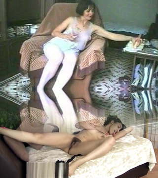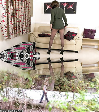 Skinny mature Scarlet fingers her well well-lubed fanny in tights