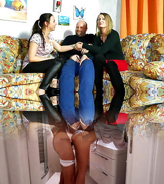 Two busty Cougar sluts working one lucky dick - old school amateurs homeporn facial