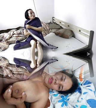 Student visits mature doll and bands her on the white bed
