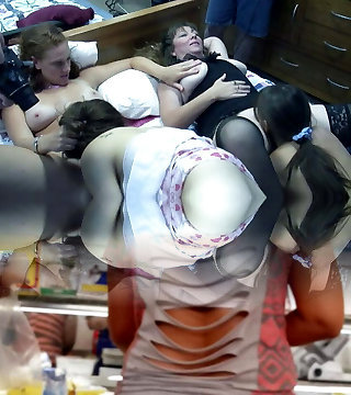 Six sexy mature gals eat each other out in steamy lesbian orgy