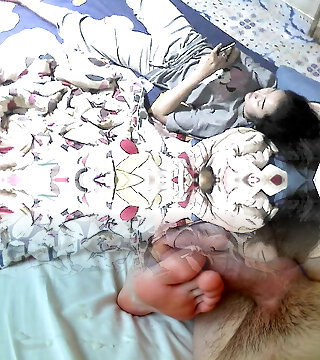 Sharing the sofa with Step-mother again, she agrees because she is too horny!