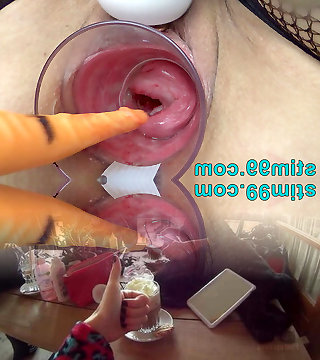 Granny dildo injection and gape