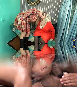 Hefty busty mothers lick and fuck each other