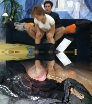 Midget munches regular size whore on the couch with pleasure