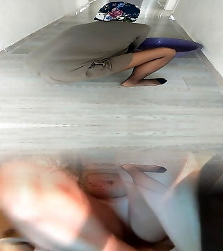 Turkish Woman in hijabs nylon stocking wipes floors
