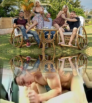 Group of grannies devours a pair of massive young hard weenies