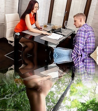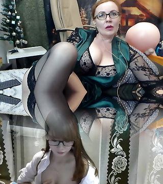 Mature glasses wearing redhead in pantyhose
