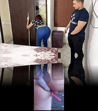 Mi Hermosa Madrastra Limpiando el Cuarto con Pantalones Ajustados No Puedo dejar de Mirar su Gran Bootie