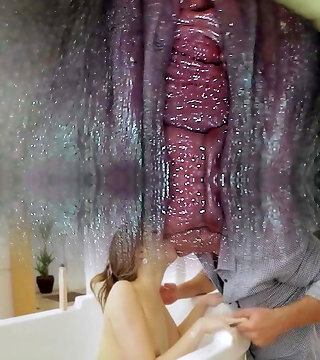 Mommy roleplay with huge dildo in the shower